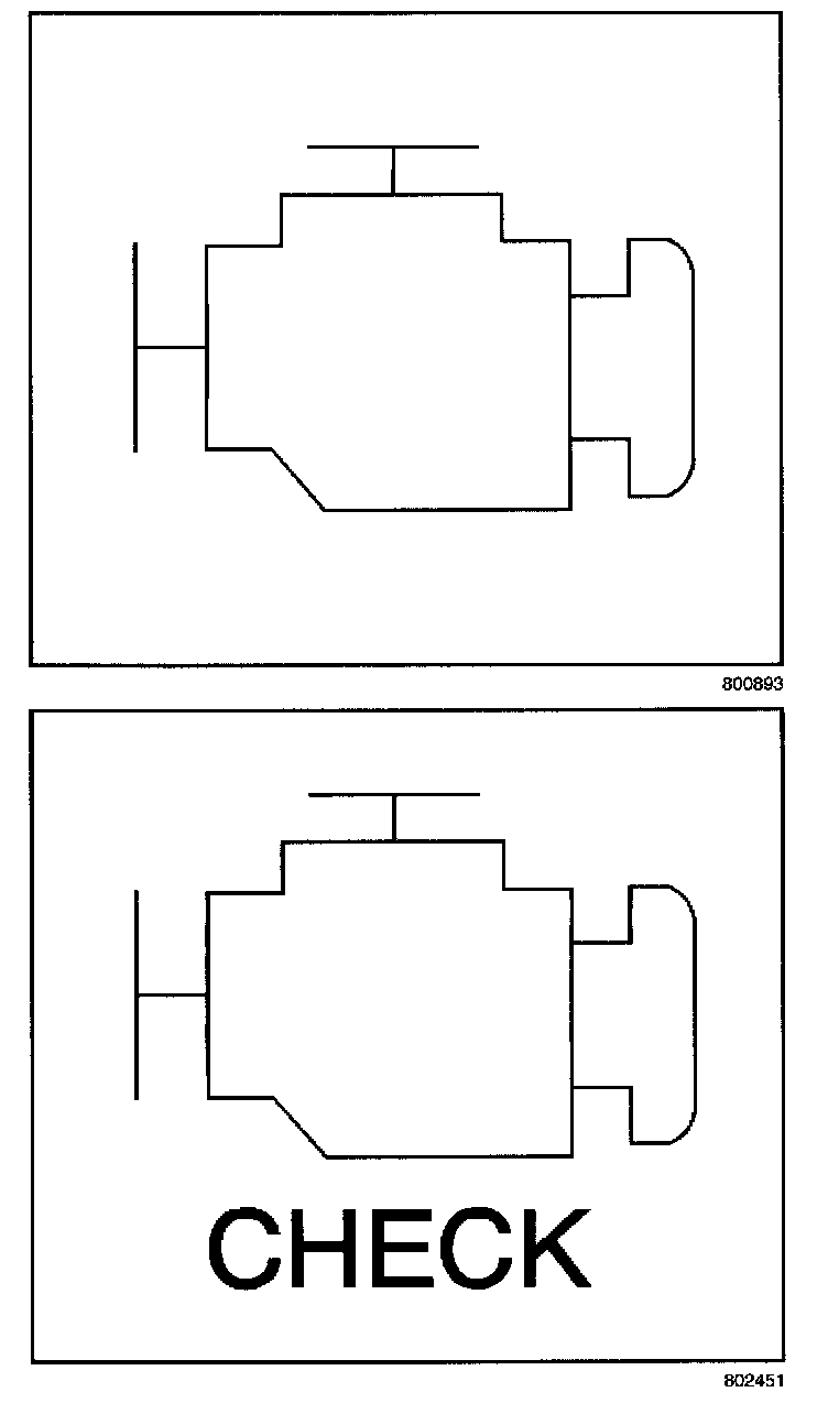 The malfunction indicator lamp (MIL) is located in the instrument panel cluster. The MIL will display as either SERVICE ENGINE SOON or one of the symbols when commanded ON.