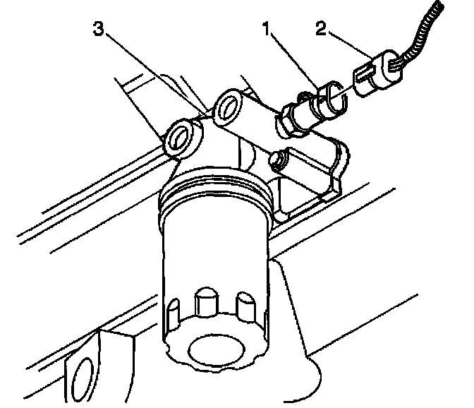 3. Remove the engine oil pressure switch (1) from the oil filter adapter (3).