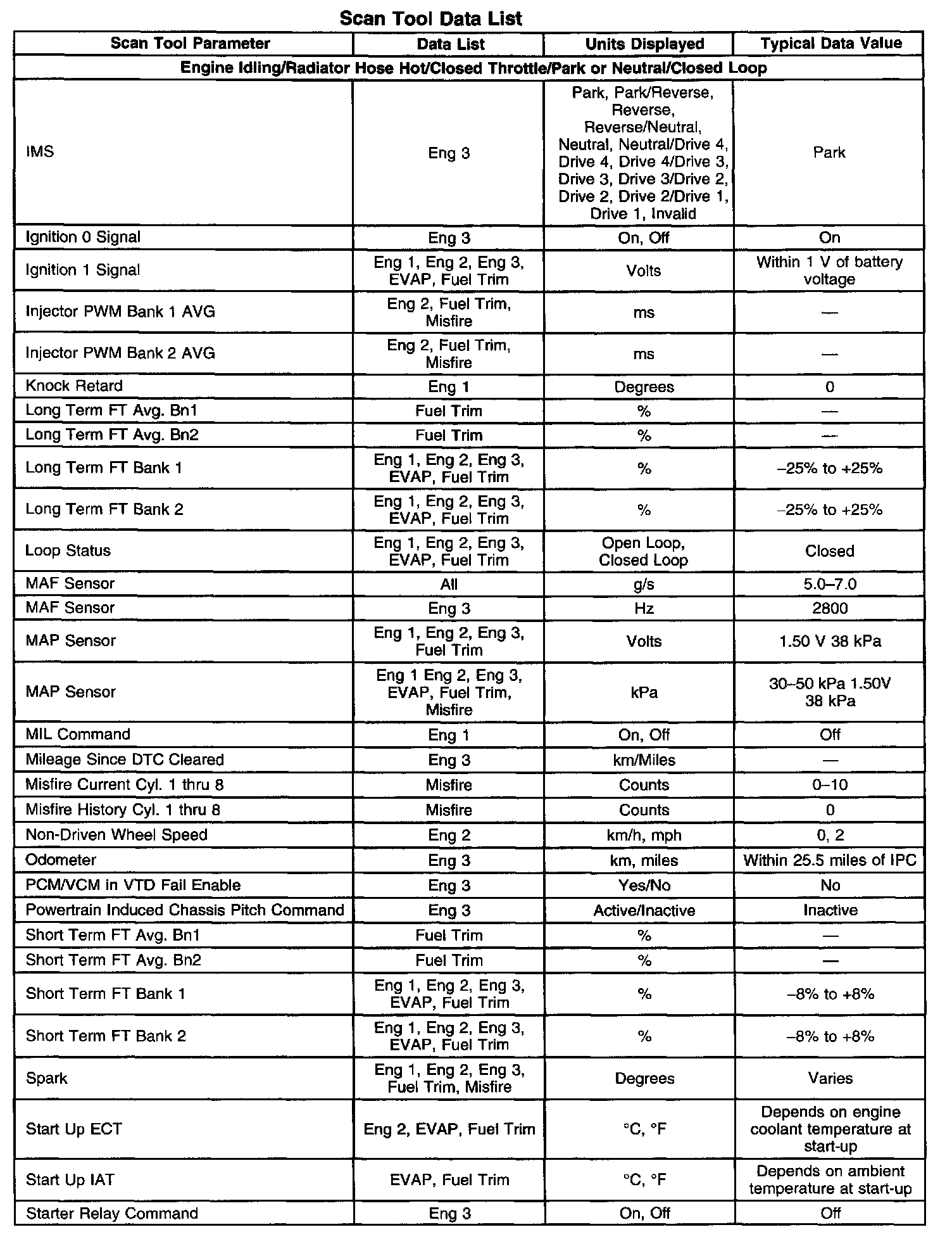 Scan Tool Data, Normal Values and Definitions