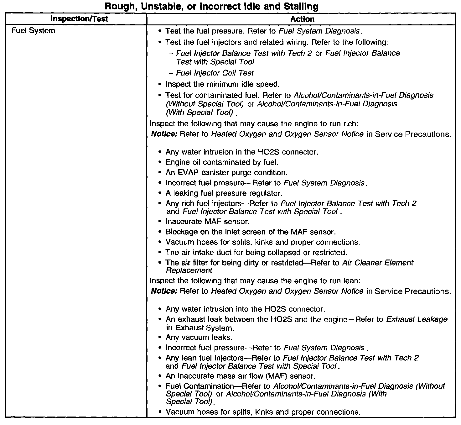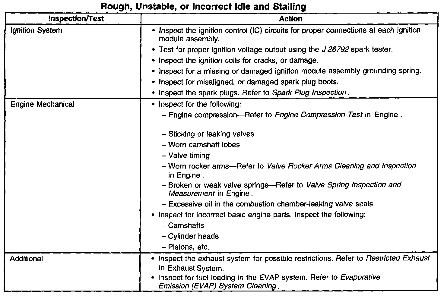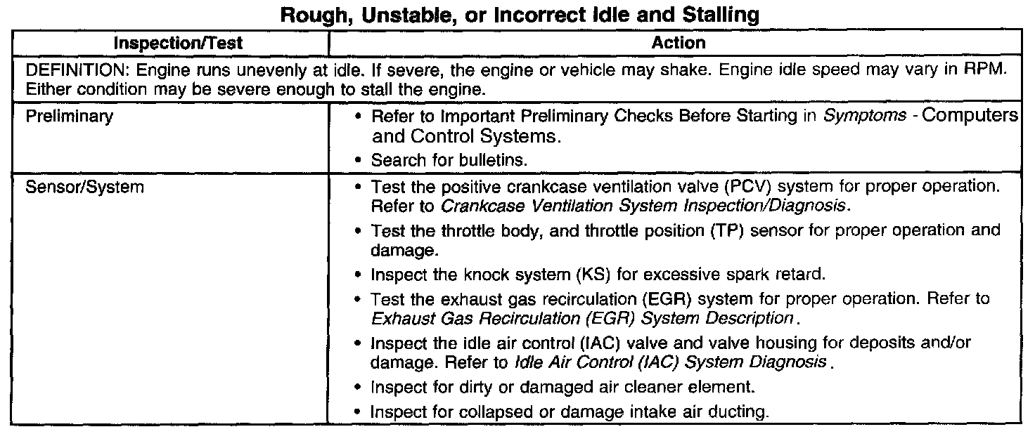Rough, Unstable, or Incorrect Idle and Stalling