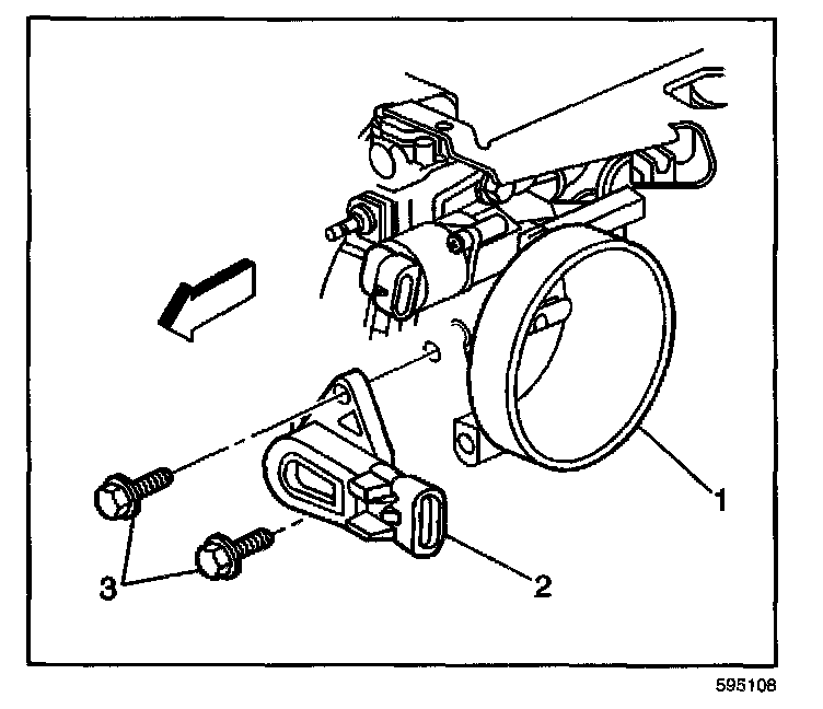 4. Remove the TP sensor retaining screws electrical connector (2) from the TP sensor (3).