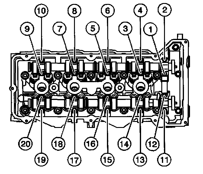 Tighten the camshaft bearing cap bolts 5 Nm (44 inch lbs.)