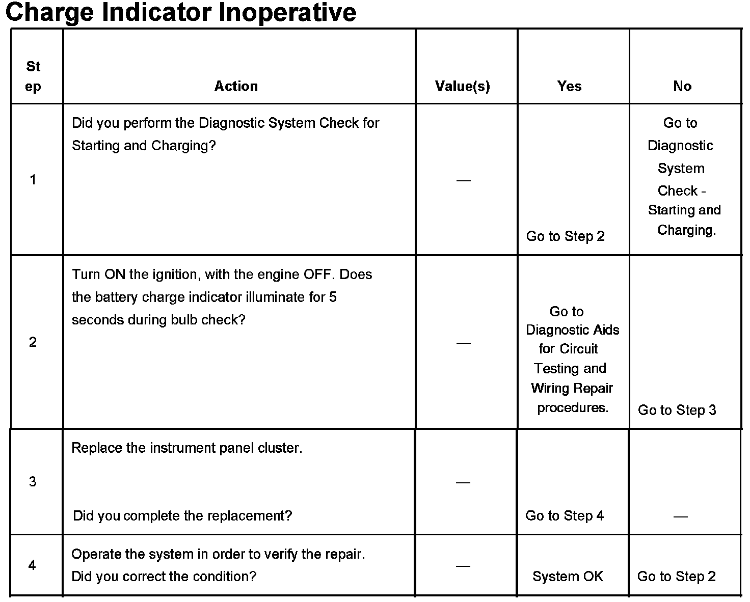 Charge Indicator Inoperative