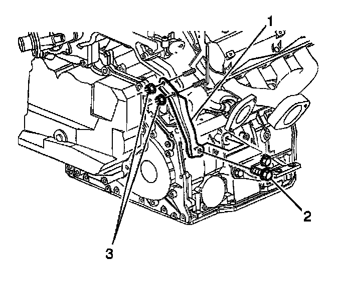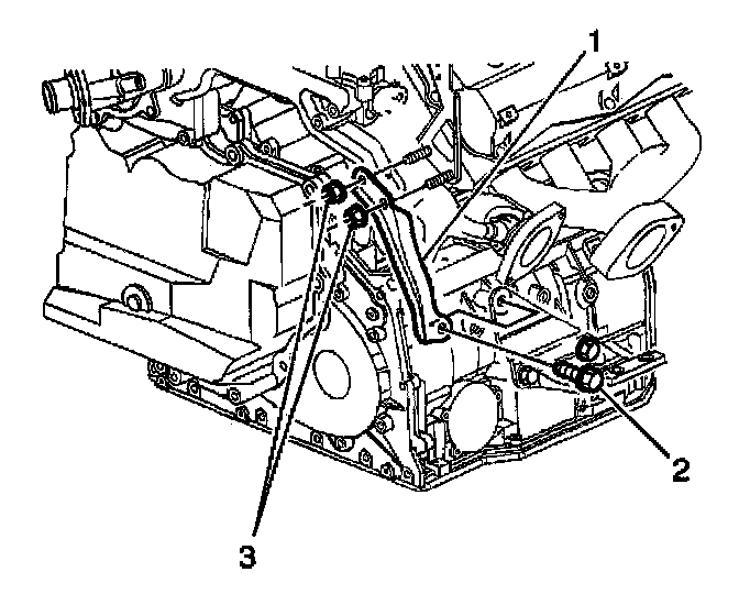 4. Loosely install the nuts (3) securing the rear transaxle brace (1) to the cylinder head.