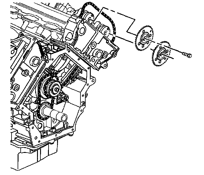 7. Slide the left exhaust camshaft sprocket off of the camshaft and remove the left secondary drive chain from the camshaft sprocket teeth.