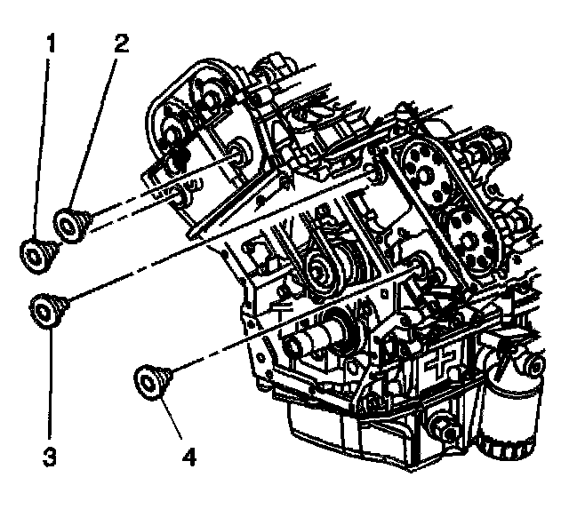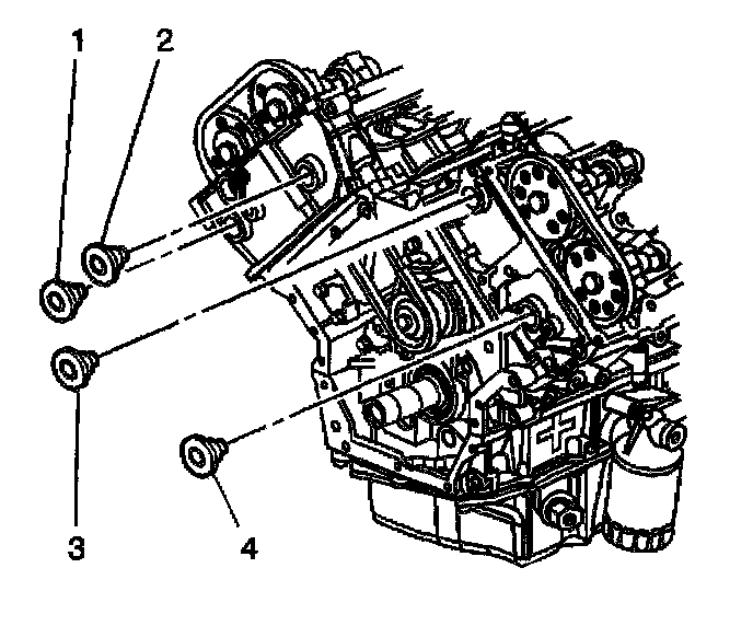 4. Install the left secondary camshaft drive chain guide access plug (4) located in the cylinder head. Ensure the O-ring seal is attached to the access plug.