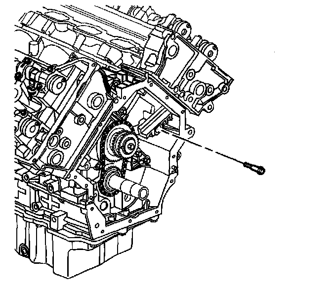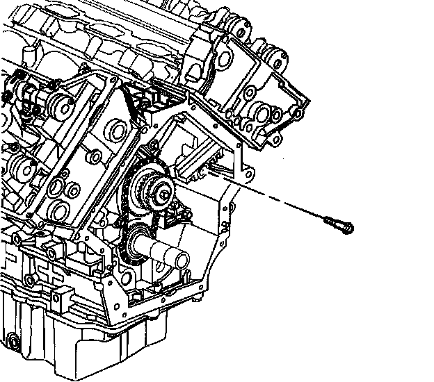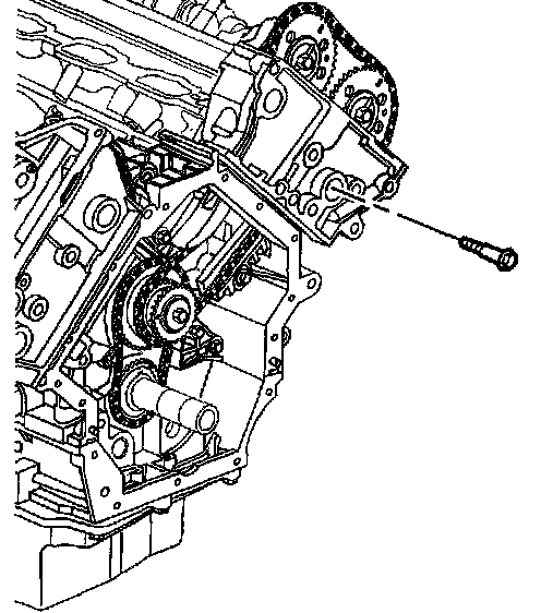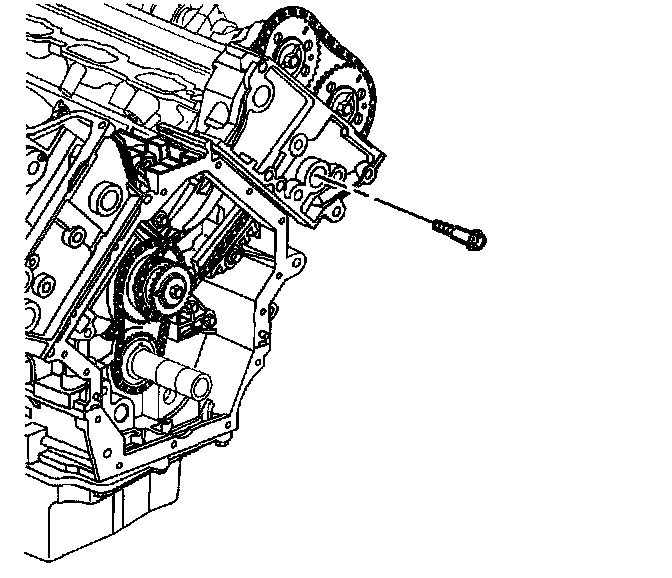 10. Remove the lower left secondary camshaft drive chain guide bolt.