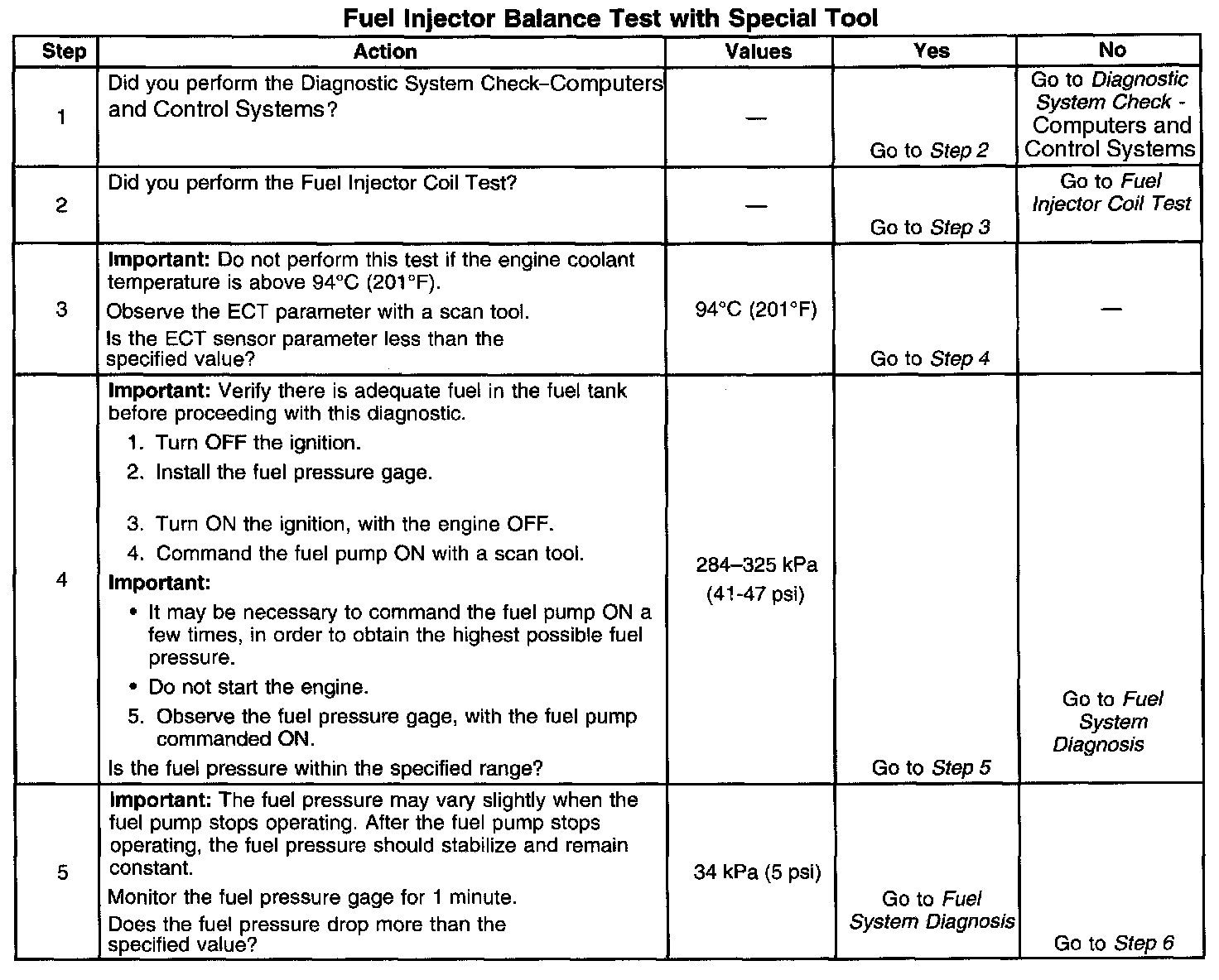 Fuel Injector Balance Test Example (Typical):