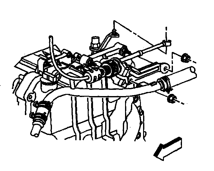 Caution: To avoid any vehicle damage, serious personal injury or death when major components are removed from the vehicle and the vehicle is supported by a hoist, support the vehicle with jack stands at the opposite end from which the components are being removed.