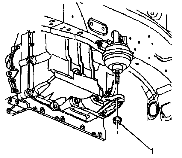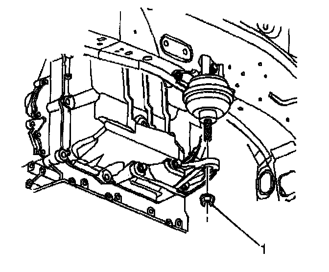 41. Remove the nut (1) securing the left transaxle mount to the left transaxle mount bracket.