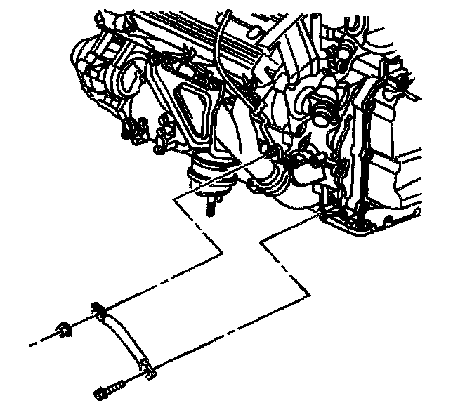 23. Loosen the nut securing the left transaxle brace to the engine.