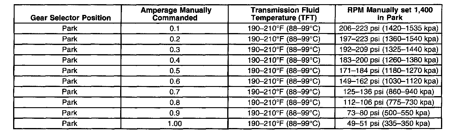 Line Pressure Chart