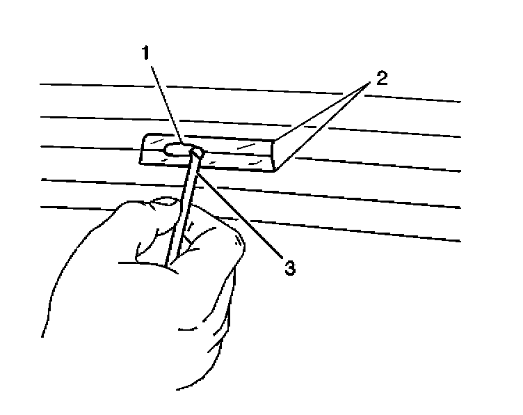 2. Use the brush (3) in order to spread the grid line repair material (1). Ensure that the repair material covers all of the areas of the cut out.