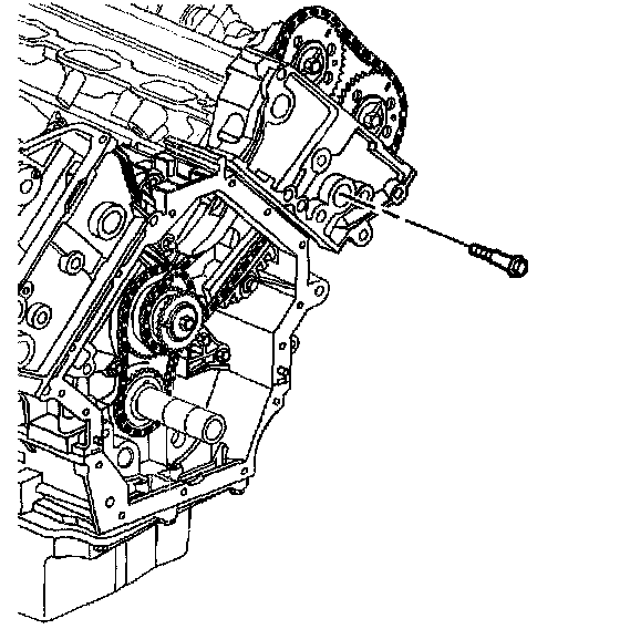 10. Remove the upper left secondary camshaft drive chain guide bolt.