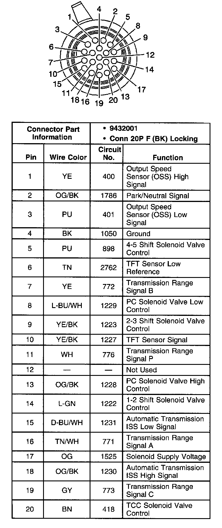 Automatic Transmission Inline 20-Way Connector End View