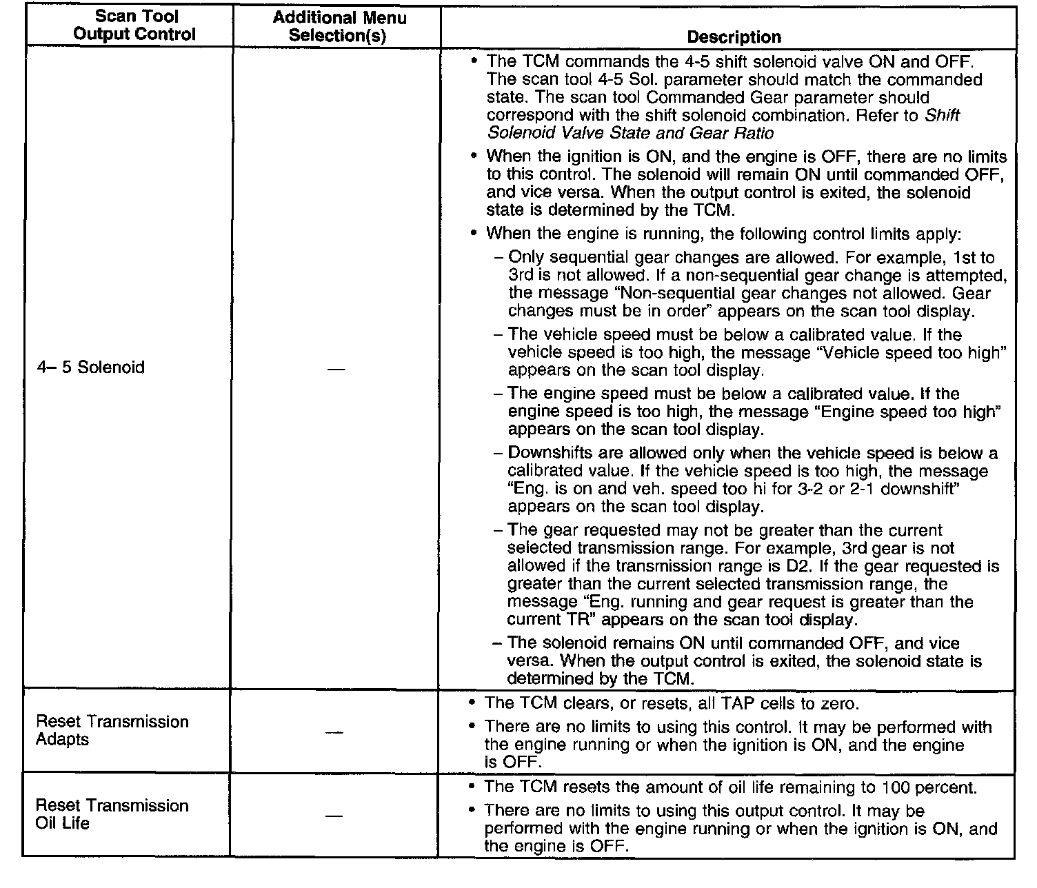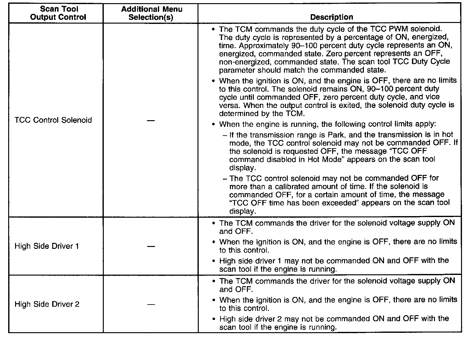 Scan Tool Output Controls