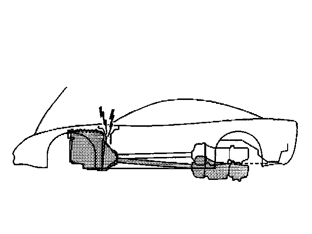 Notice: When tilting down the rear of the driveline, observe the clearance between the rear of the engine and the composite dash panel. Do not allow the engine to rest unsupported against the composite dash panel. or vehicle damage may result.