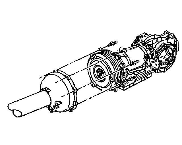 6. Slowly slide the driveline support assembly away from the transmission while supporting the transmission torque converter.