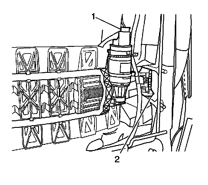 3. Push in on the lumbar assembly (2) and disengage the assembly from the seat frame.