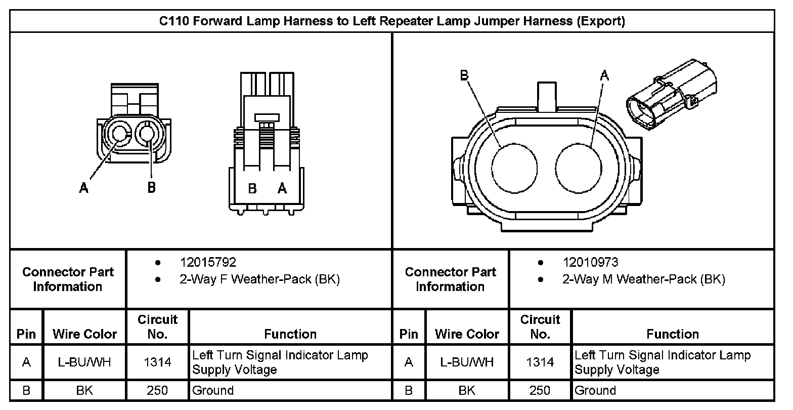 C110 Forward Lamp Harness to Left Repeater Lamp Jumper Harness (Export):