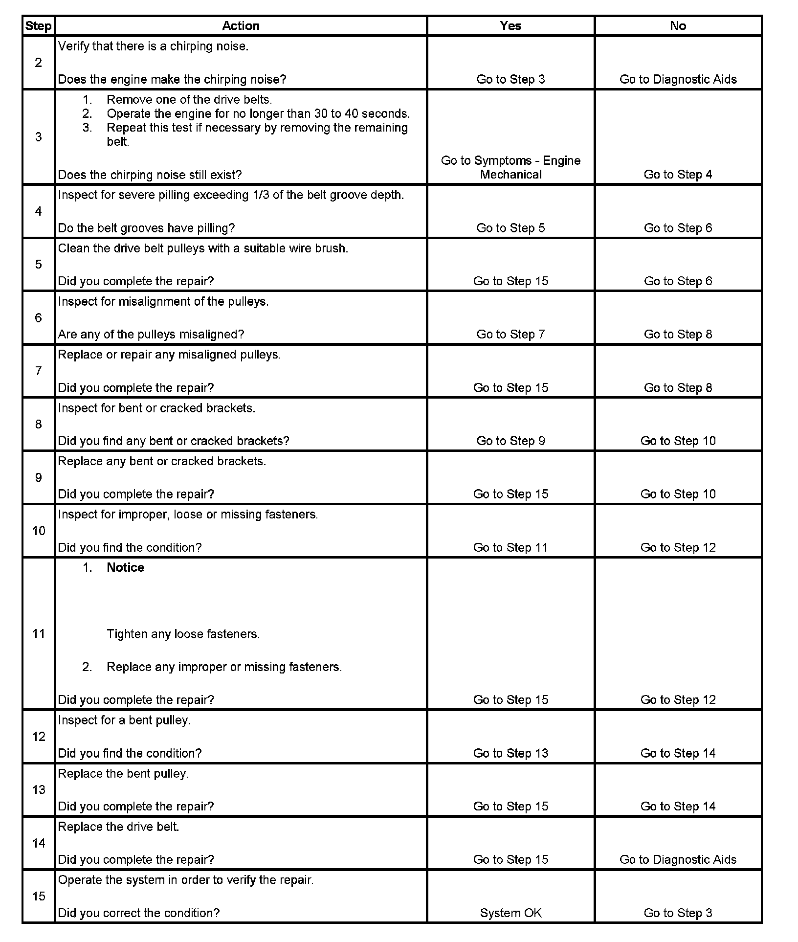 Drive Belt Chirping DiagnosisDiagnostic Aids