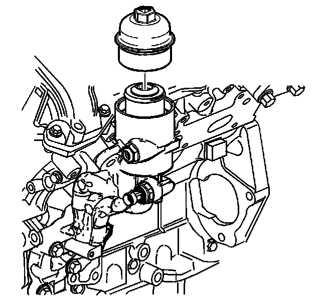 4. Notice: Lubrication must be applied to the threads of the oil filter cap prior to installation. Failure to lubricate the oil filter cap threads can hinder later removal and cause possible oil filter cap damage.