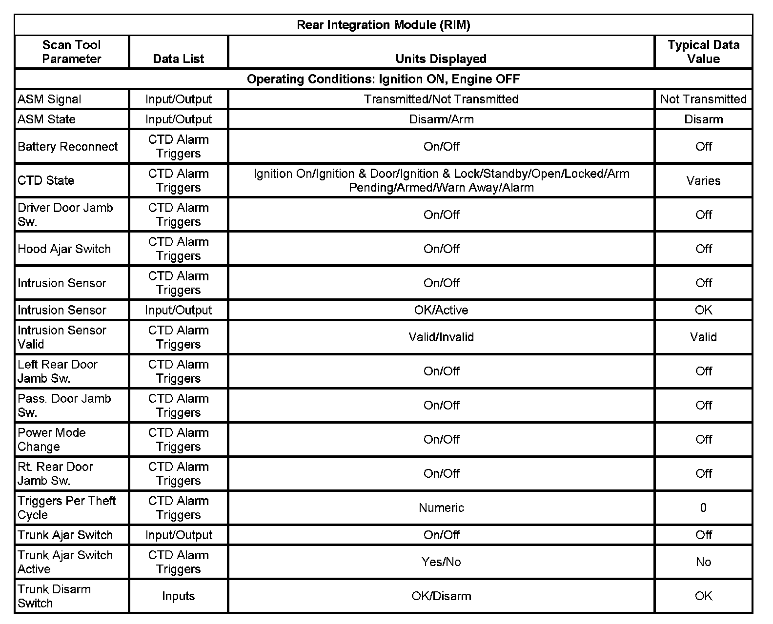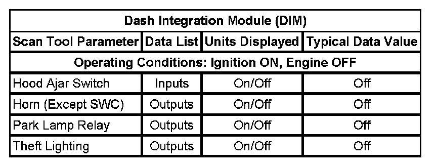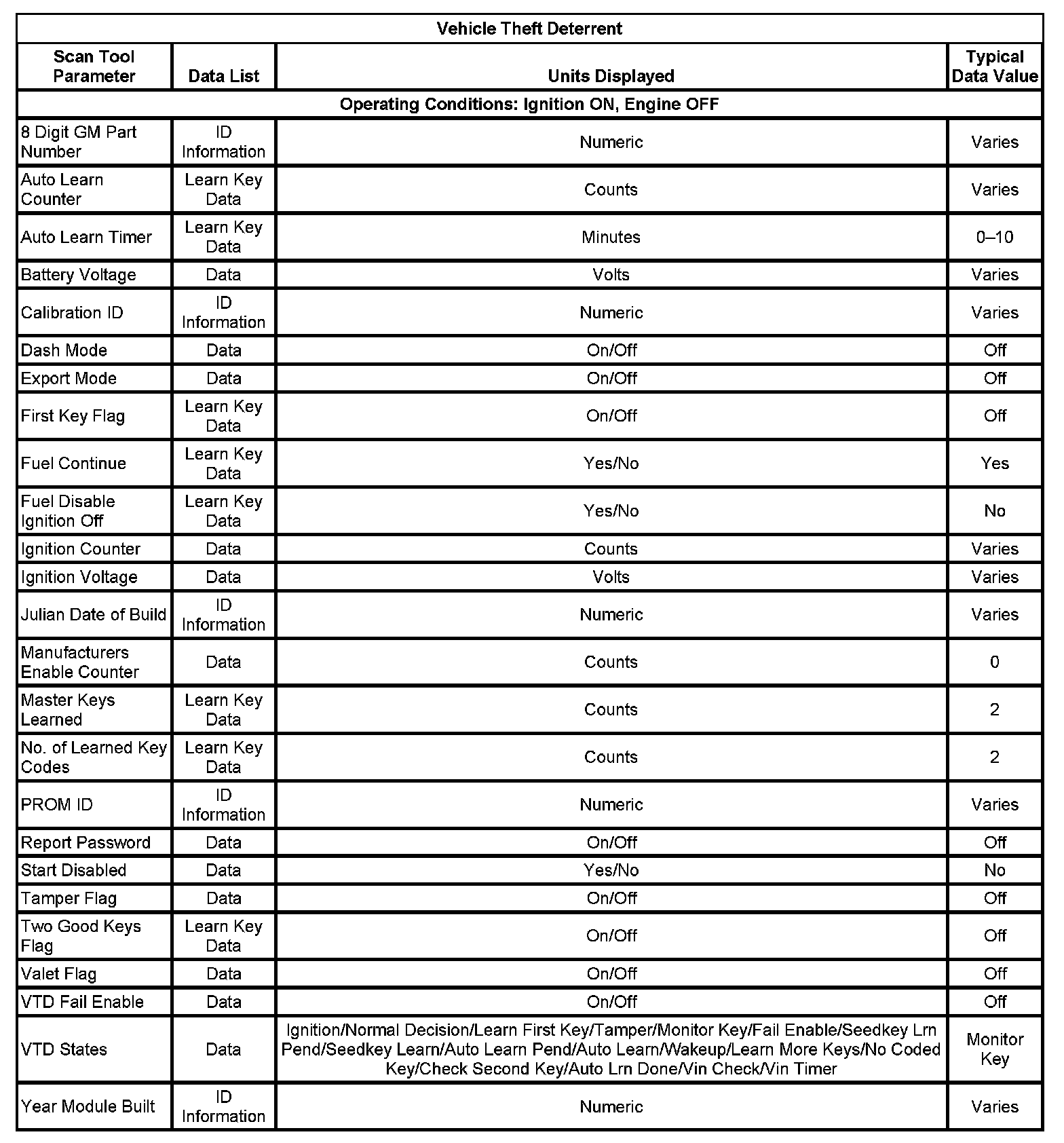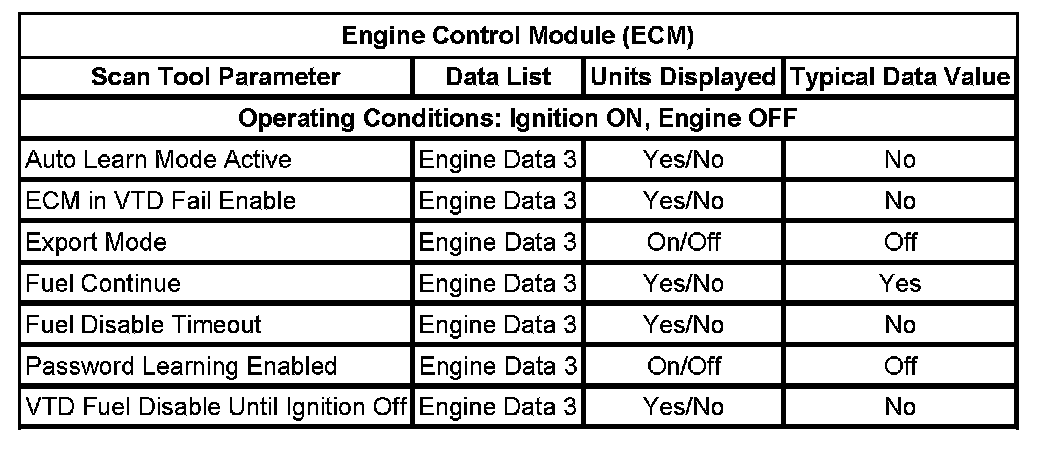 Scan Tool Data List - Antitheft System