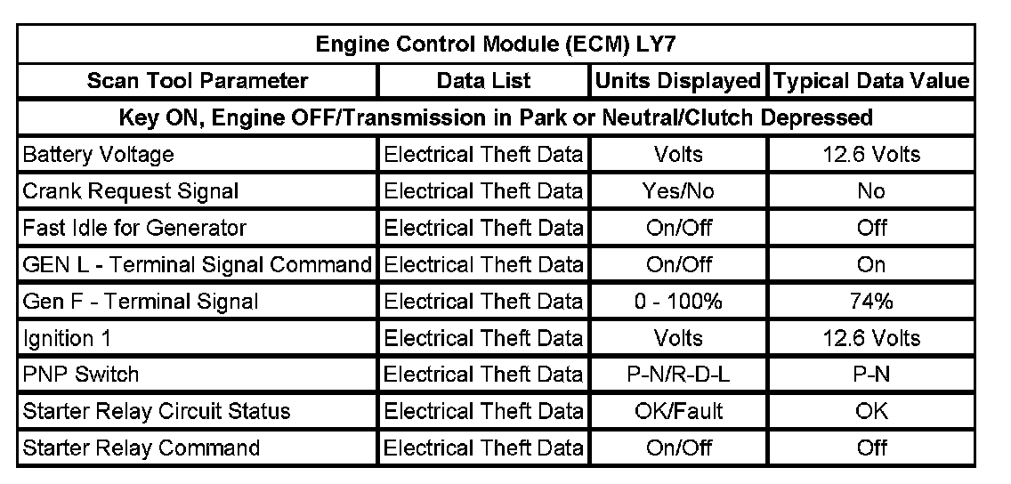 Normal Scan Tool Data Values
