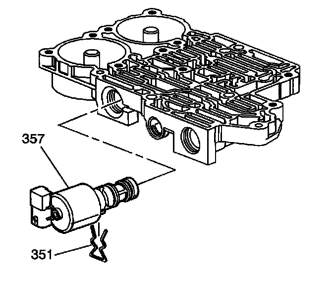 8. Remove the TCC PWM solenoid valve retainer (351).