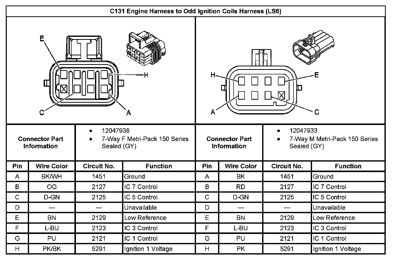 C131 Engine Harness to Odd Ignition Coils Harness: