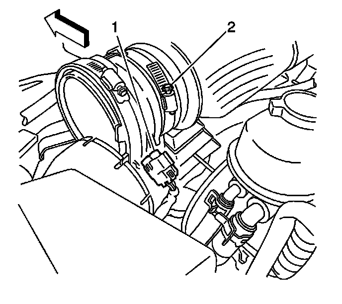 6. Loosen the MAF/IAT clamp (2).