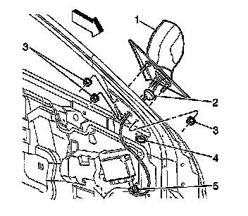 2. Remove the garnish molding. Refer to Garnish Molding Replacement - Front Door Frame (Garnish Molding Replacement - Front Door Frame) .