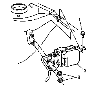 3. Remove the nuts (3) and the bolt (1) from the cruise control module assembly (2).