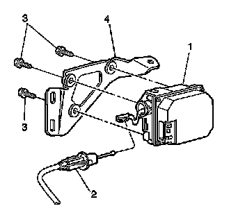 1. Install the cruise control module (1) on the mounting bracket (4).