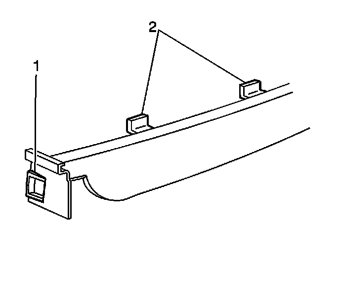 2. Insert the lens locating tabs (2) through the HVAC control module housing.Rotate the bottom of the lens toward the rear of the HVAC control module.