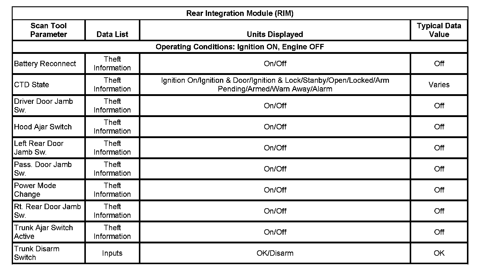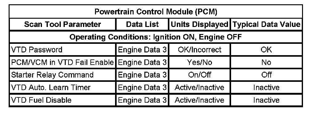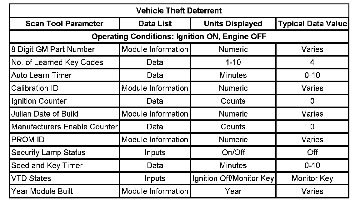 Scan Tool Data List - Antitheft System