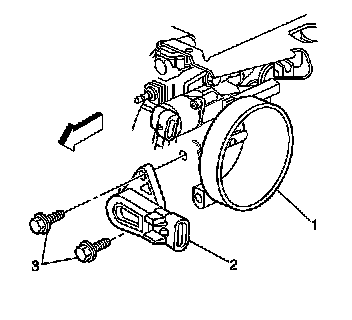 4. Remove the TP sensor retaining screws electrical connector (2) from the TP sensor (3).