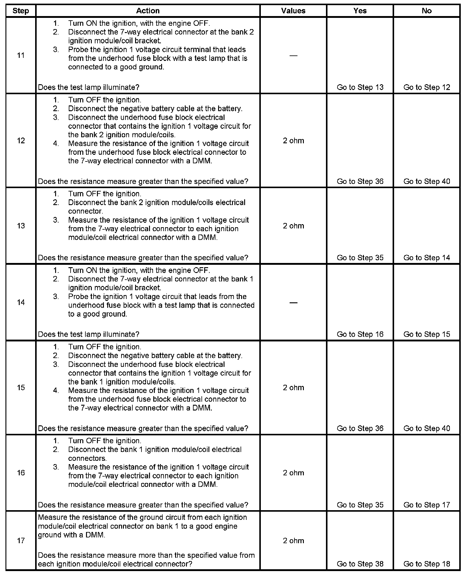 - This electronic ignition (EI) system diagnostic table assumes that the vehicle battery is fully charged. Refer to Battery Inspection/Test in Starting and Charging. Battery Inspection/Test