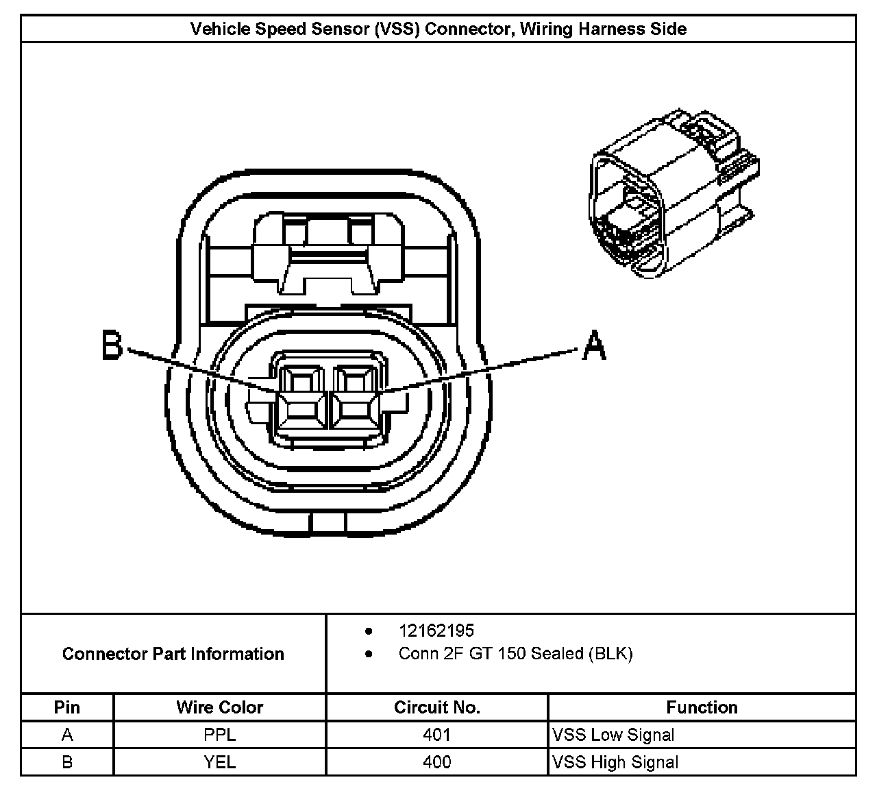 Vehicle Speed Sensor (VSS) Connector, Wiring Harness Side
