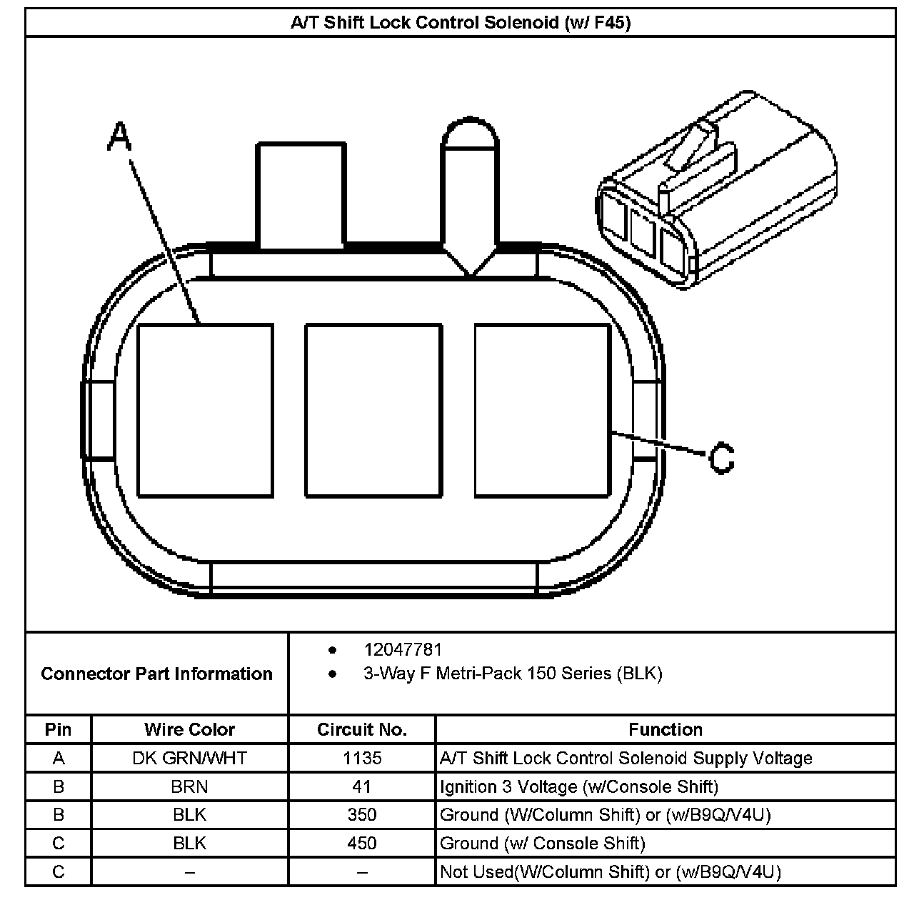 A/T Shift Lock Control Solenoid (w/ F45):