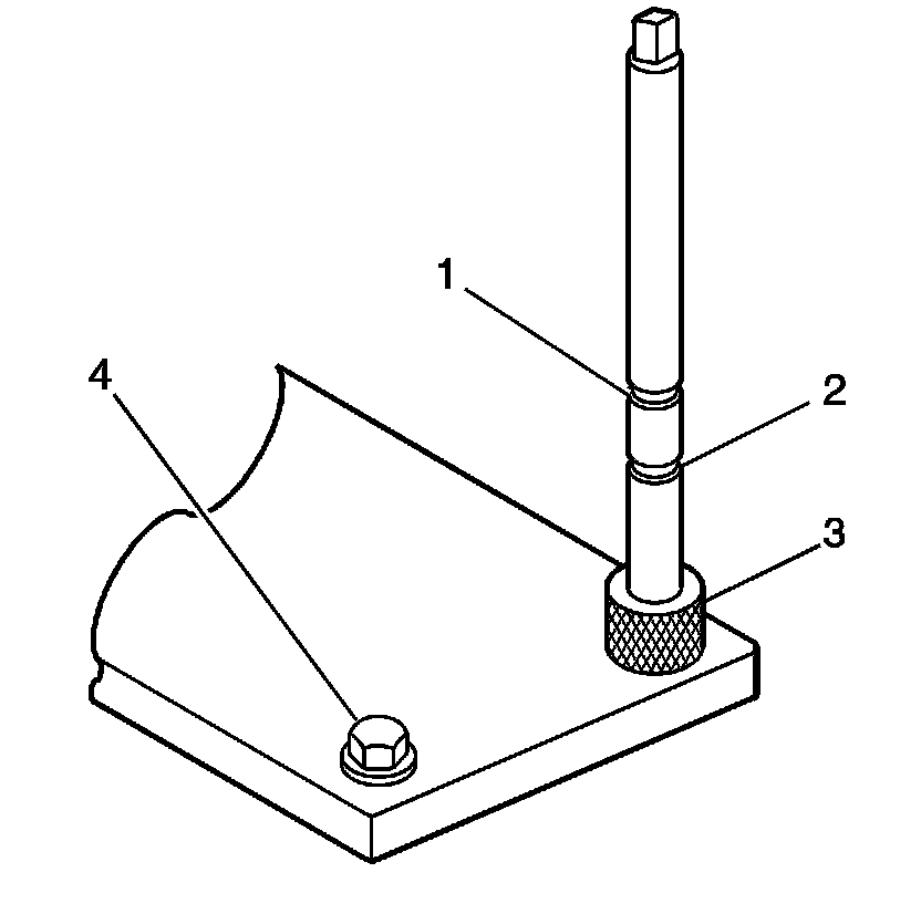 1. Position the fixture plate (3) with the bushing (2) installed over the cylinder head bolt hole to be repaired (4).