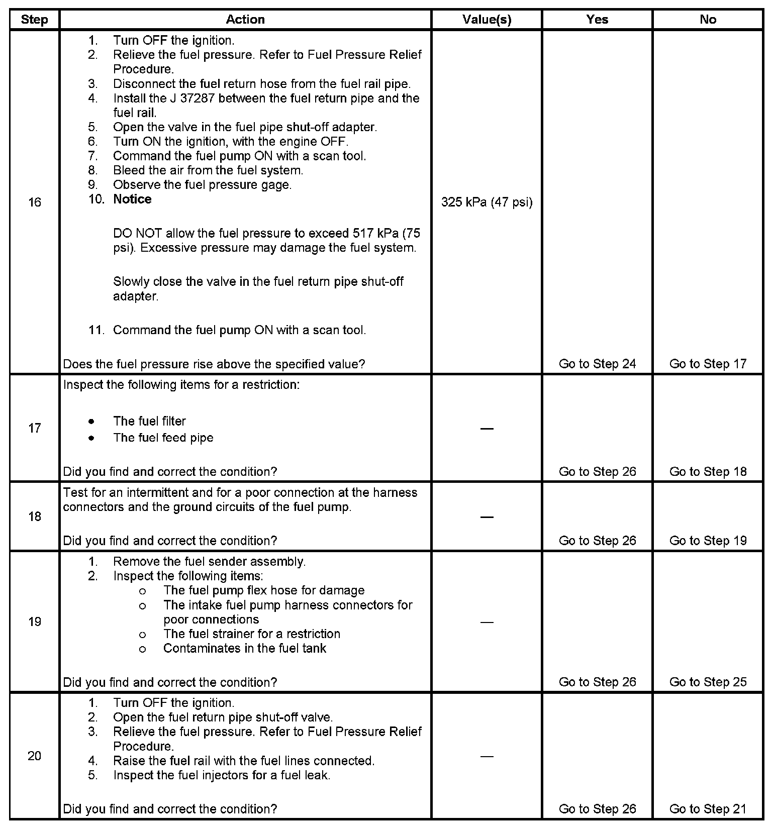18. This step verifies that a circuit condition is not the cause of a fuel pressure concern.