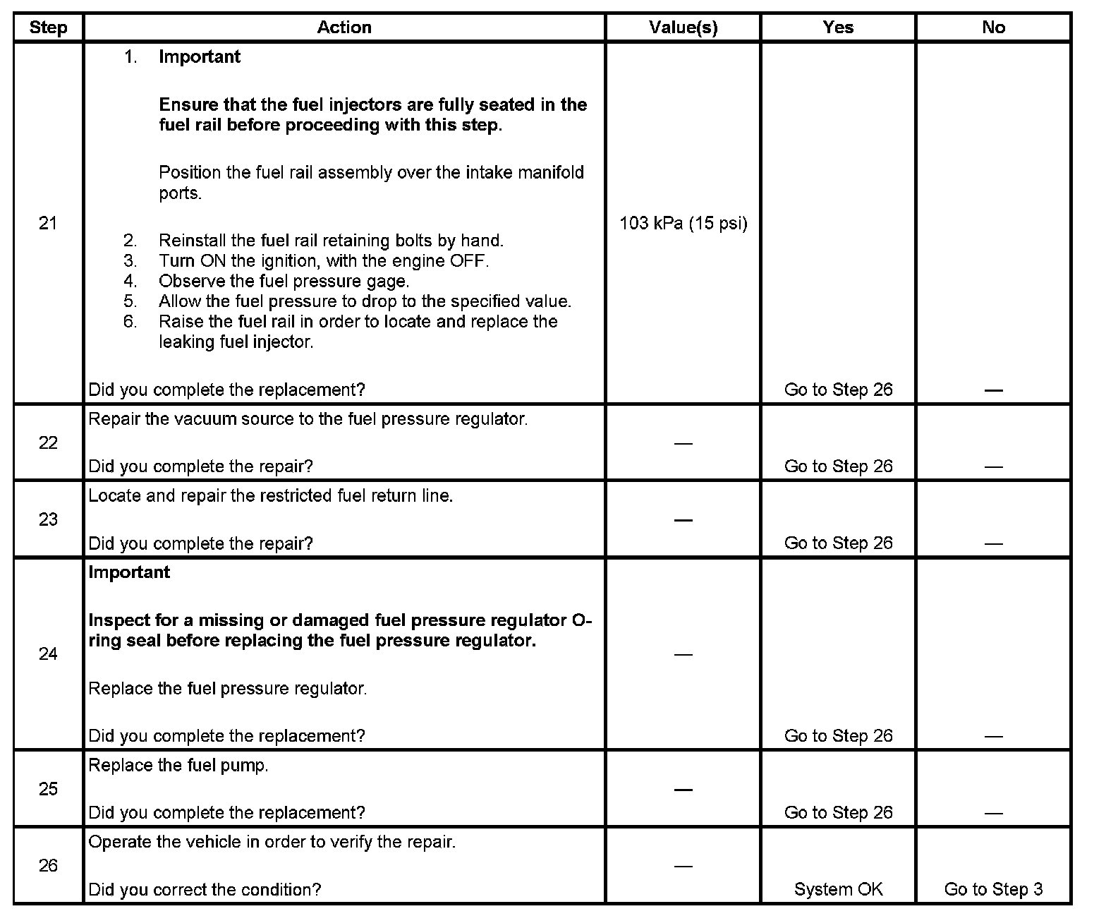 6. This step tests the fuel pressure regulator.