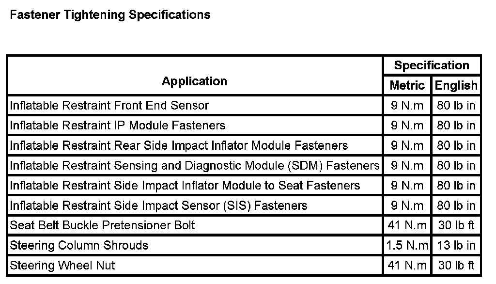 Air Bag Systems: Specifications