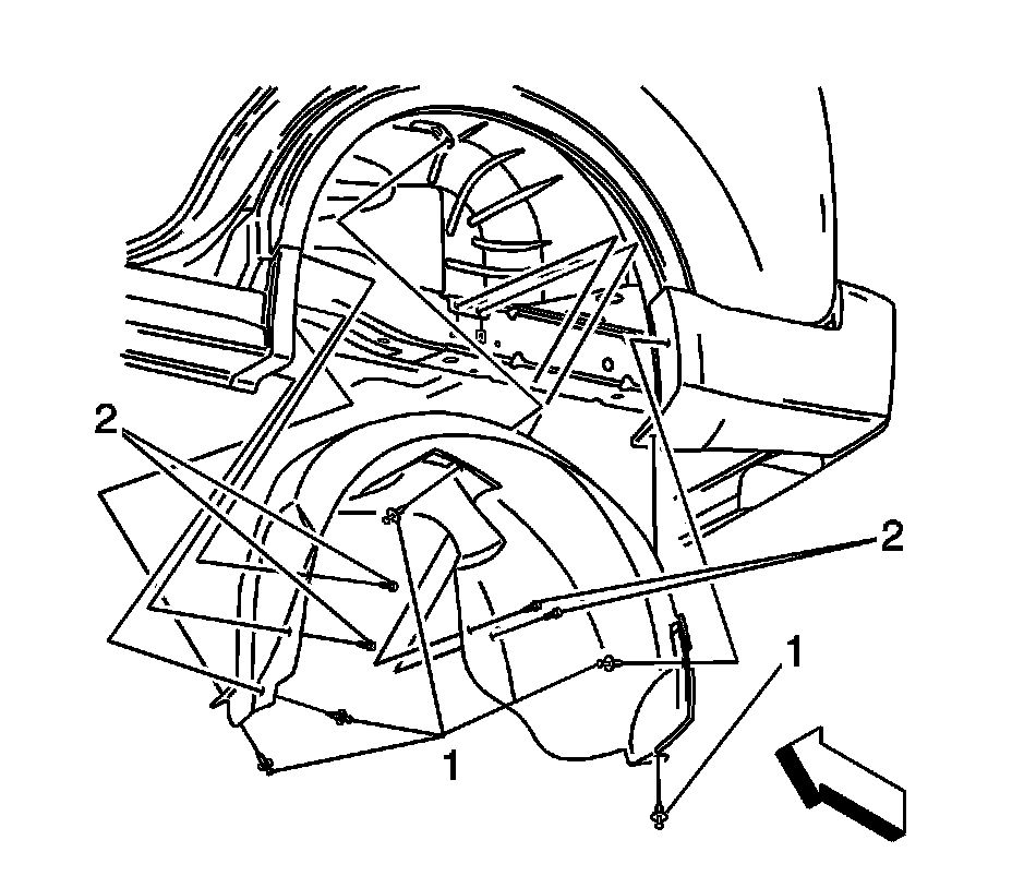 2. Remove the screws (2) securing the rear wheelhouse liner to the vehicle.