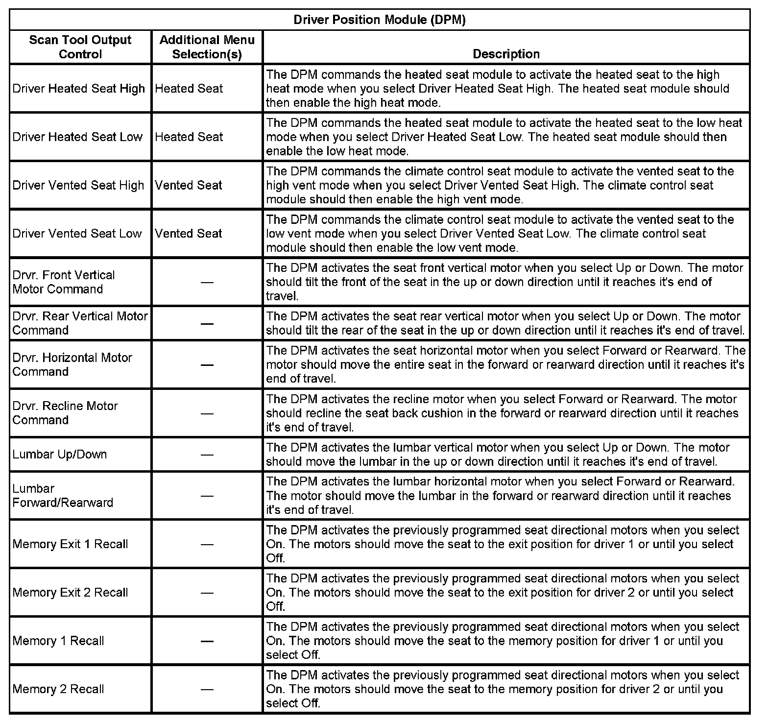 Driver Position Module (DPM) Part 1: