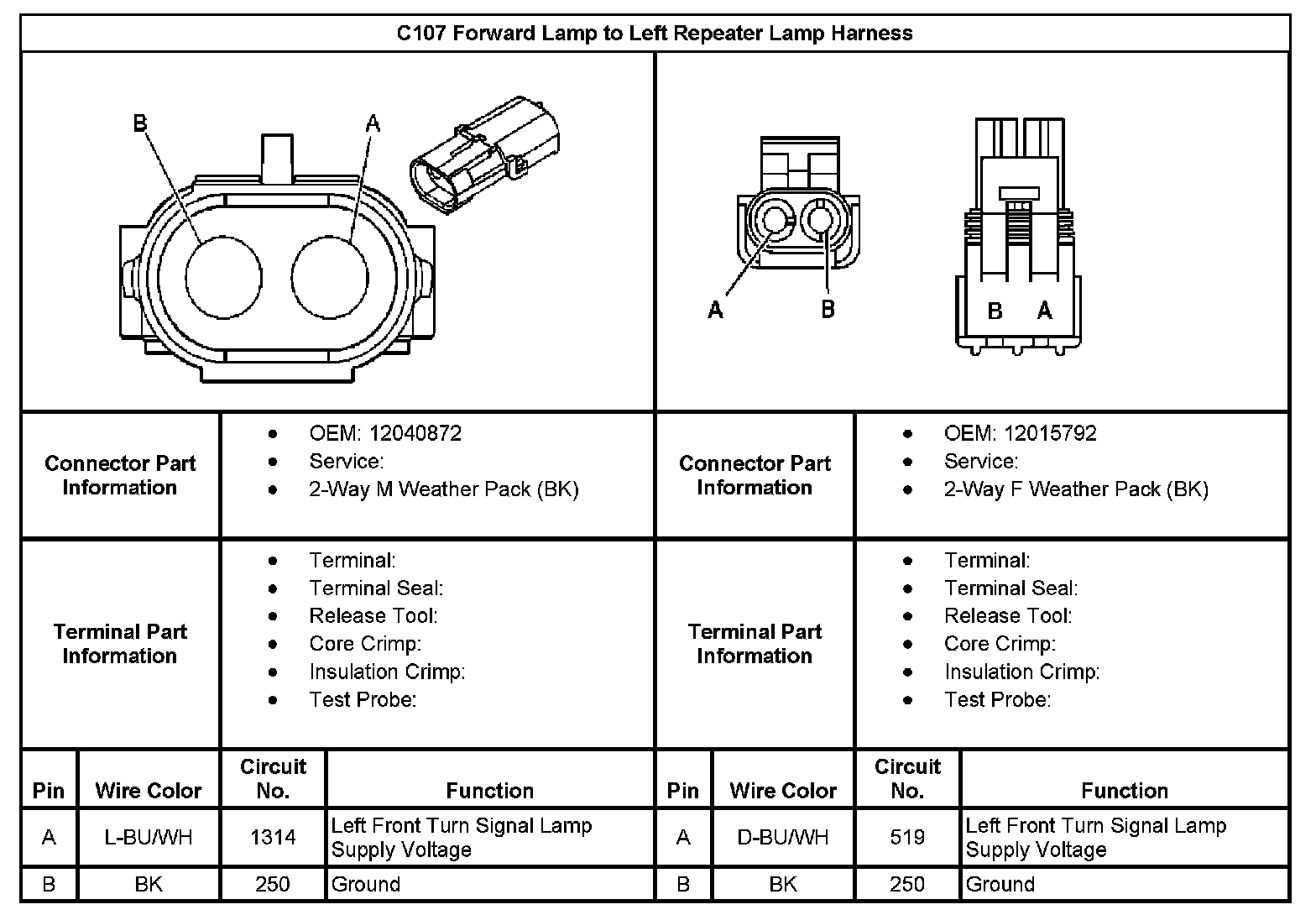 C107 Forward Lamp To Left Repeater Lamp Harness:
