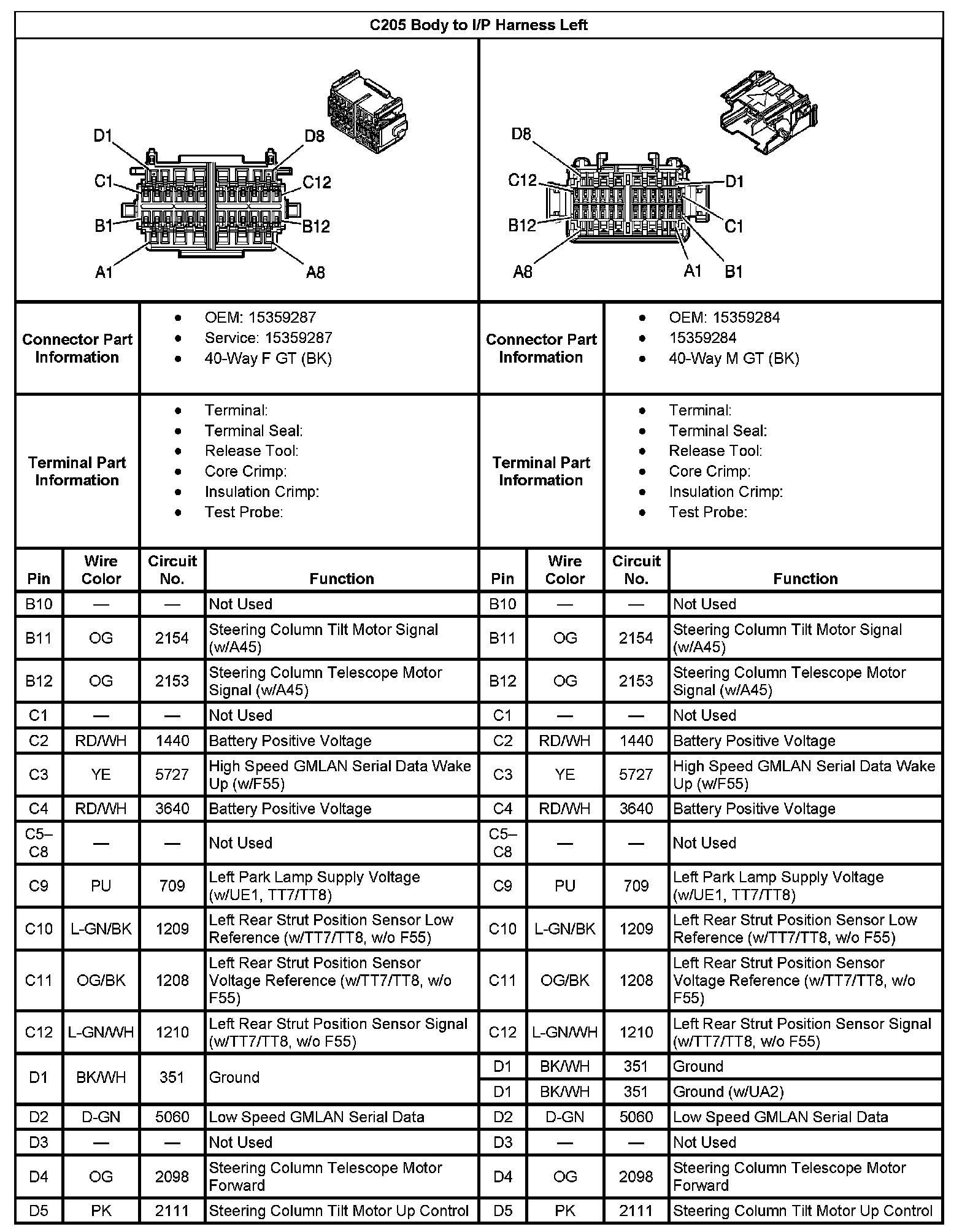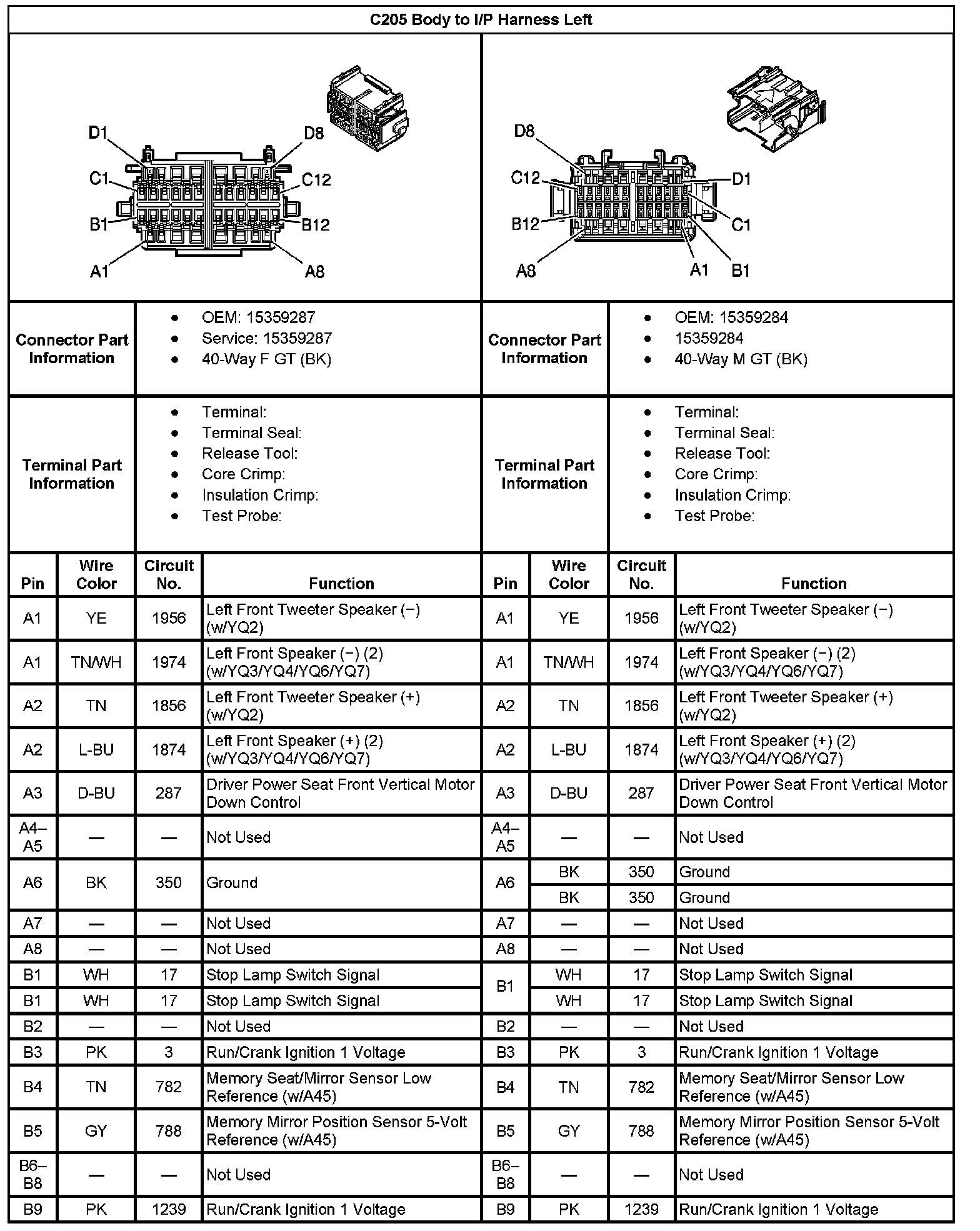 C205 Body To I/P Harness Left Part 2: