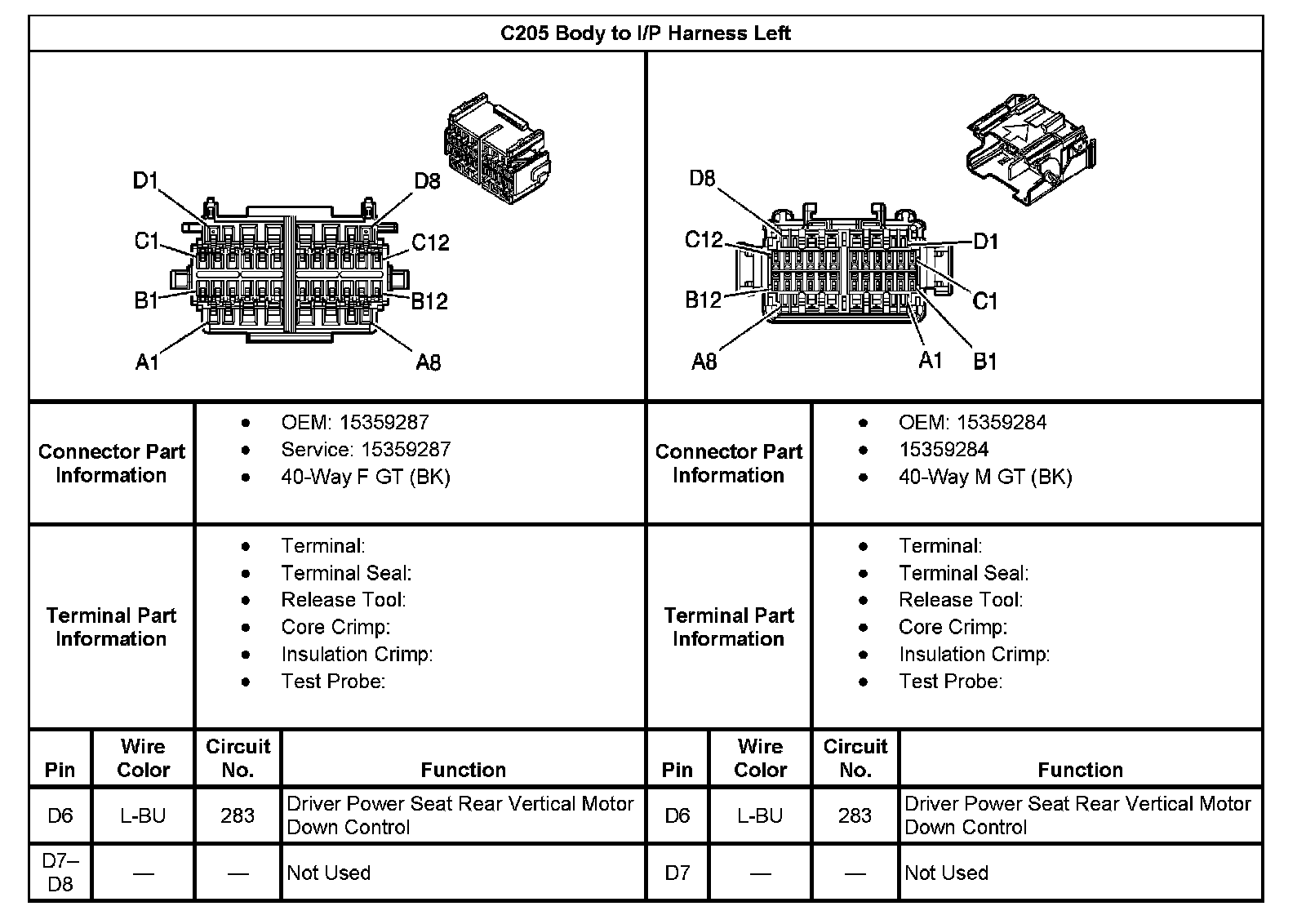 C205 Body To I/P Harness Left Part 1: