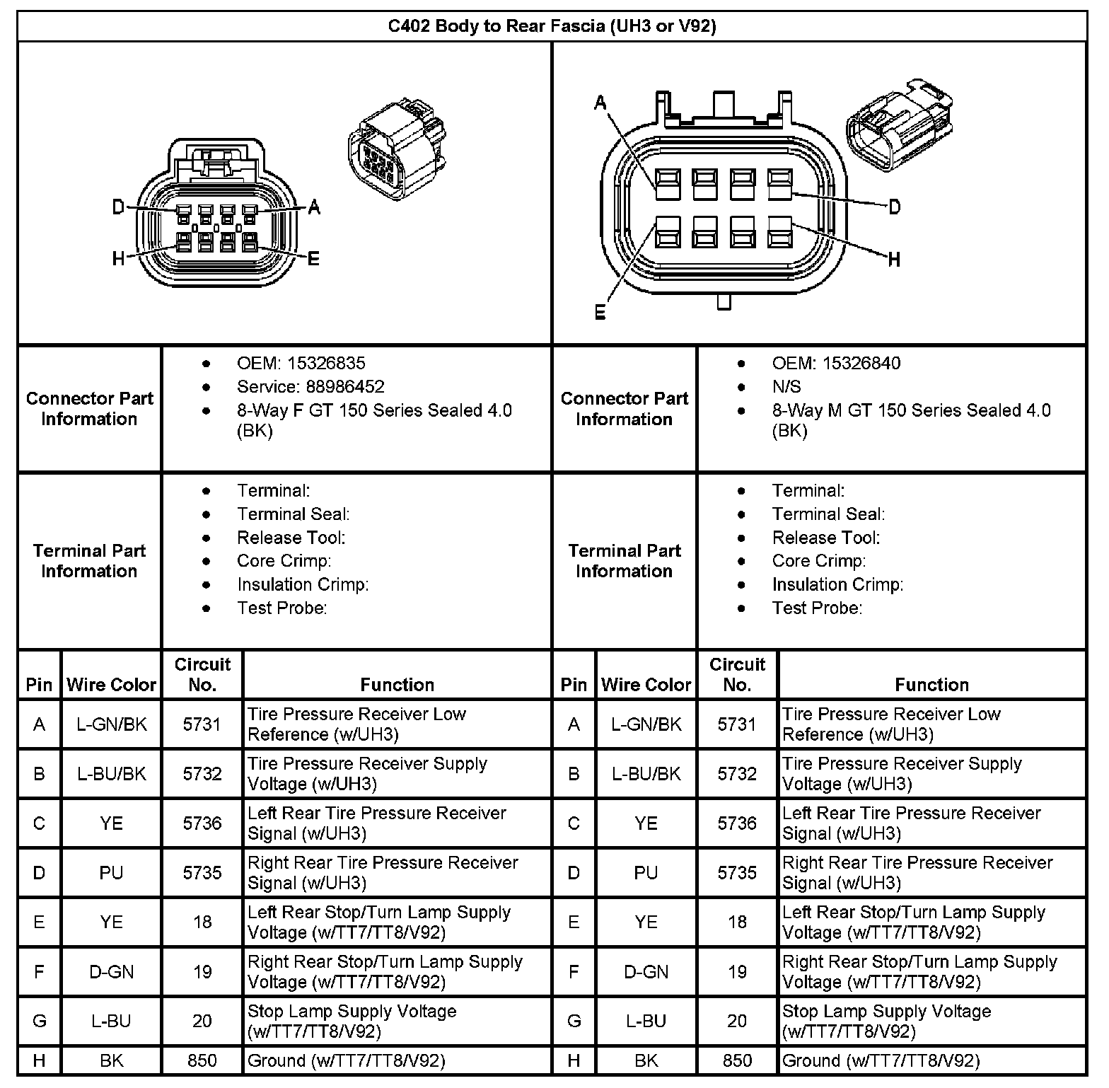 C402 Body To Rear Fascia (With RPO Code UH3 Or V92):